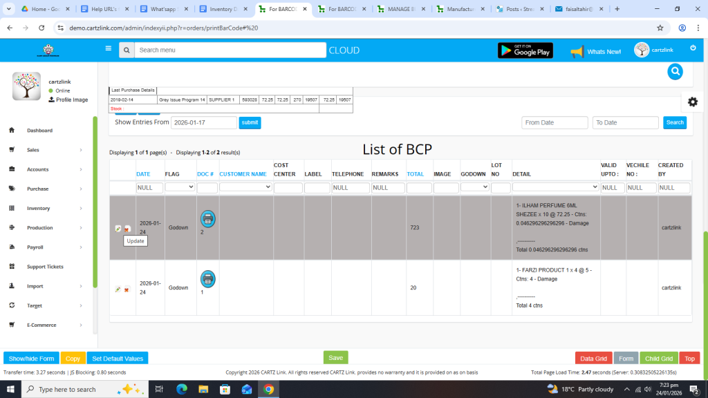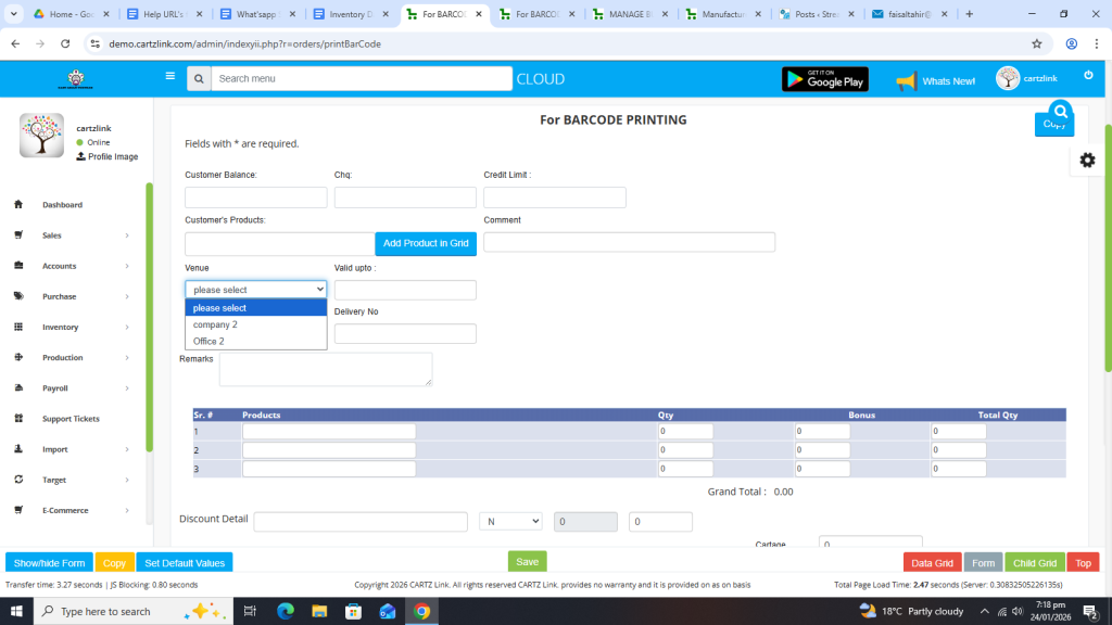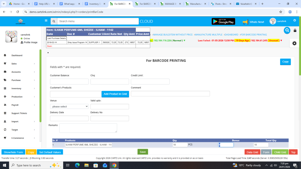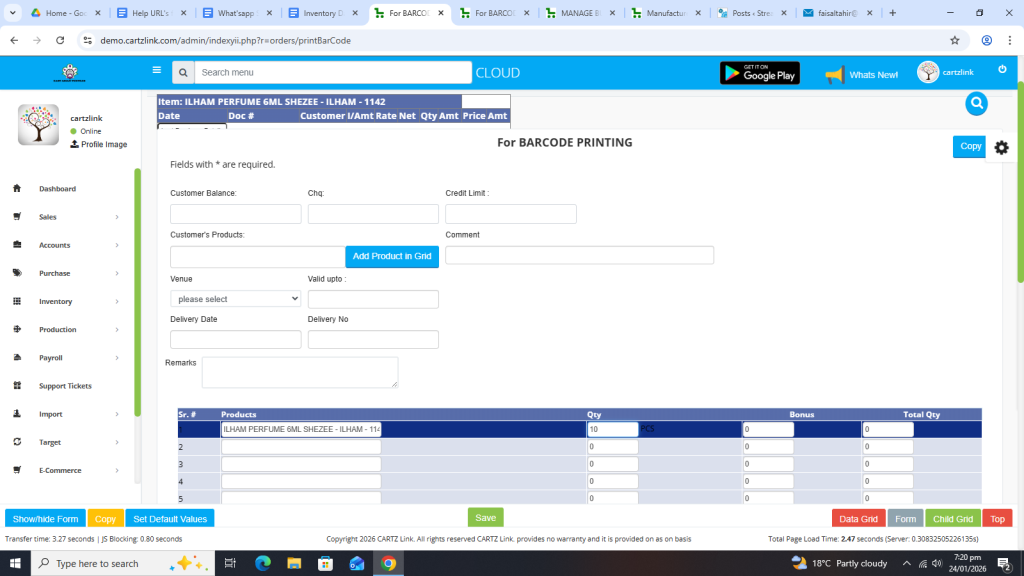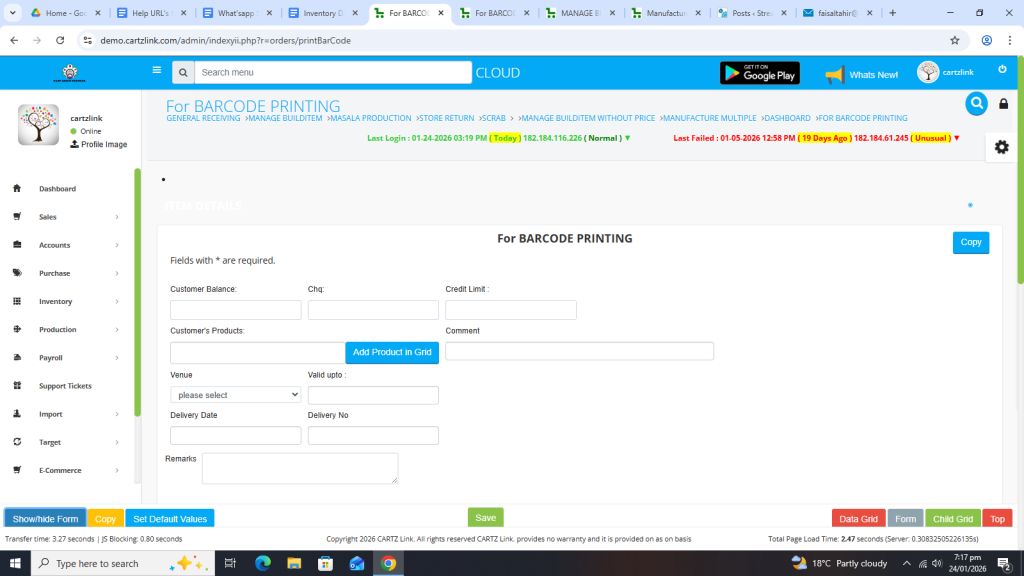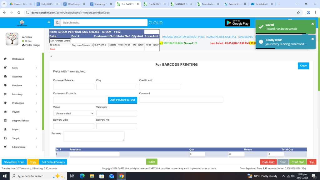 Now in order to print bar code, click on the Printer Icon against this record.