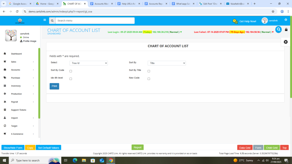 Now click on the Blue Print button to check existing accounting heads presently available in the system.