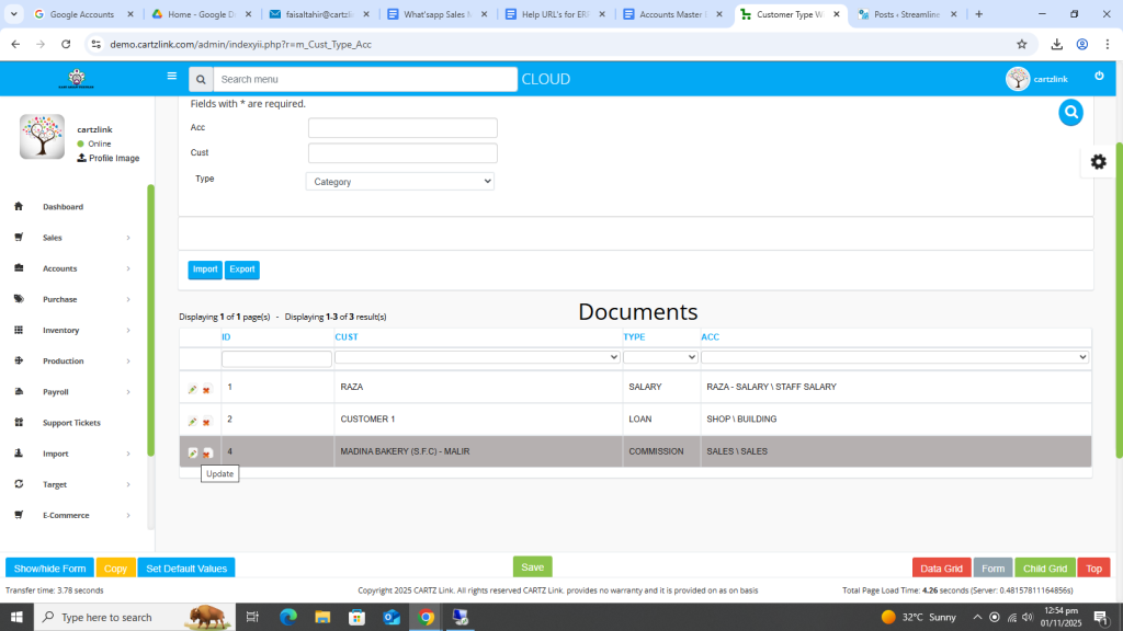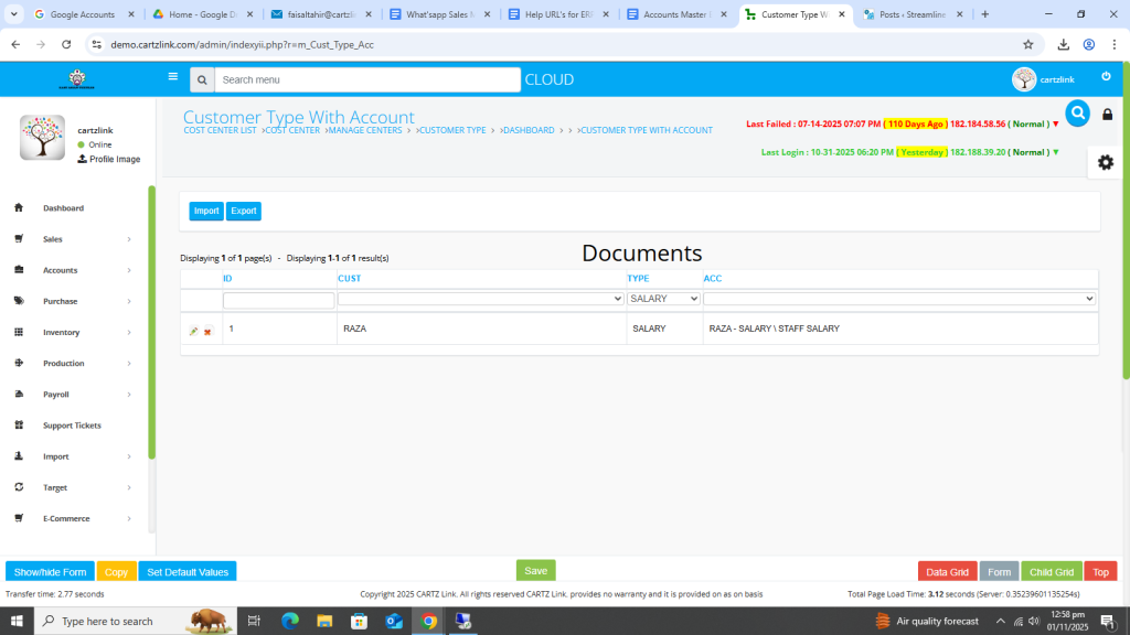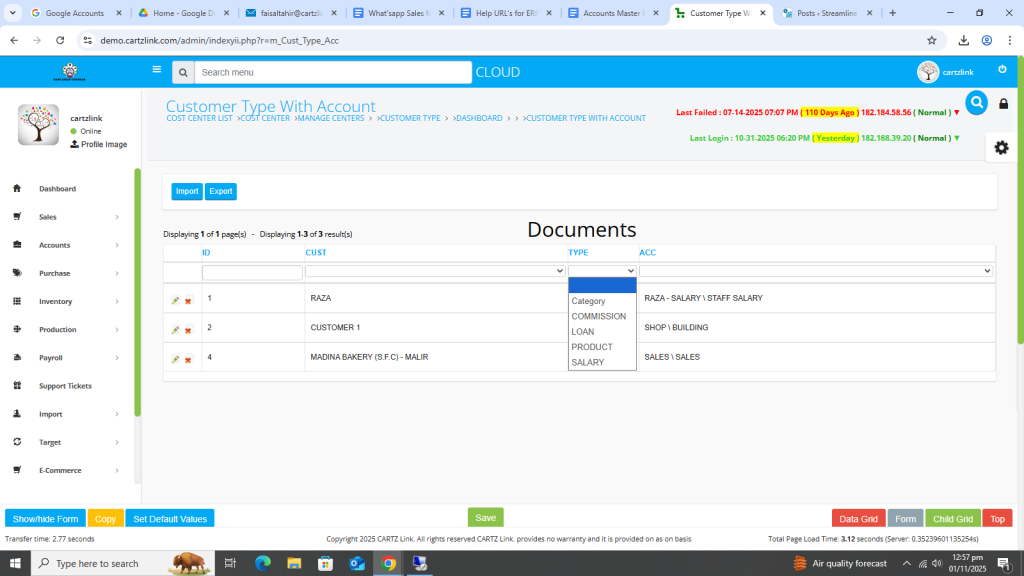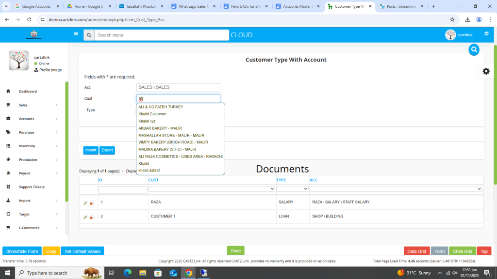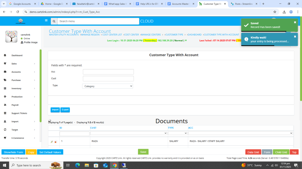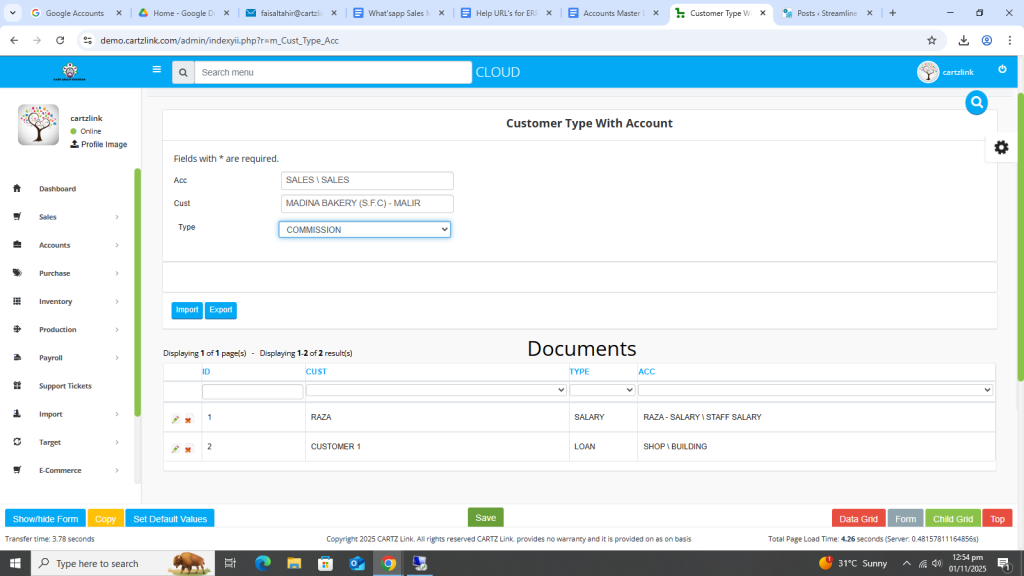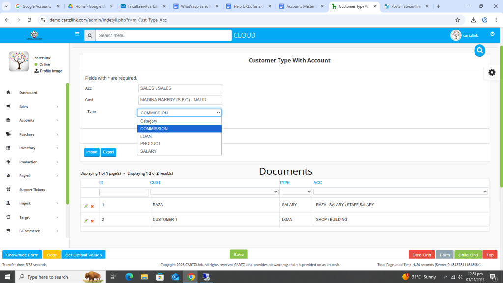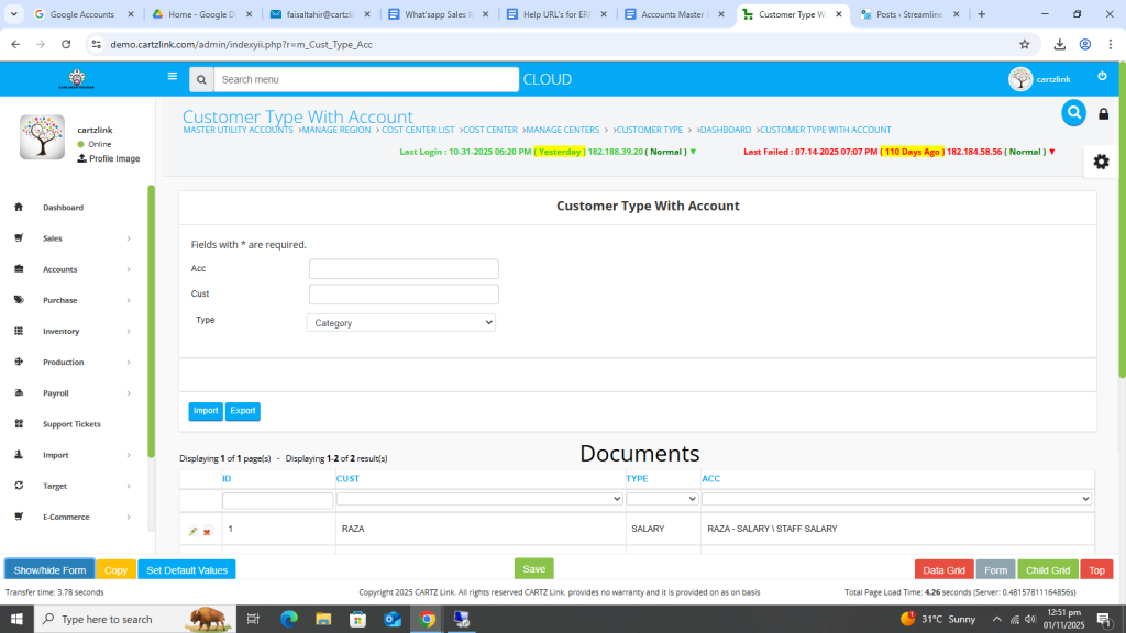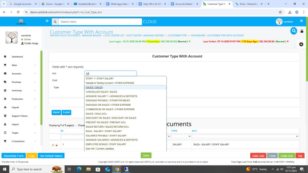 This feature is used for posting the sales on particular heads in chart of account like Export Sales. Go to Accounts, then click on Master Entry. Now click on Customer Type and again click on Customer Type with Account.
