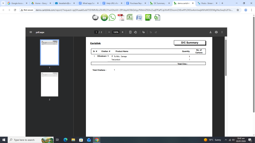 The summary of Delivery Challan can be viewed in this report. First click on Purchase, now click on Reports and then click on DC Summary.