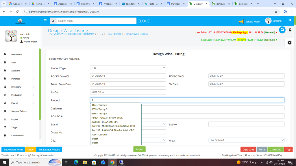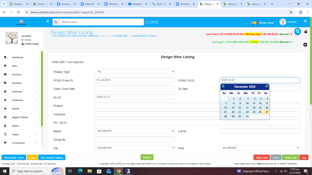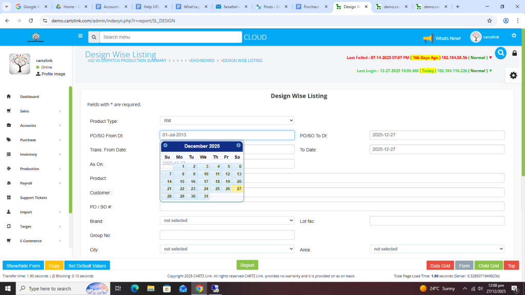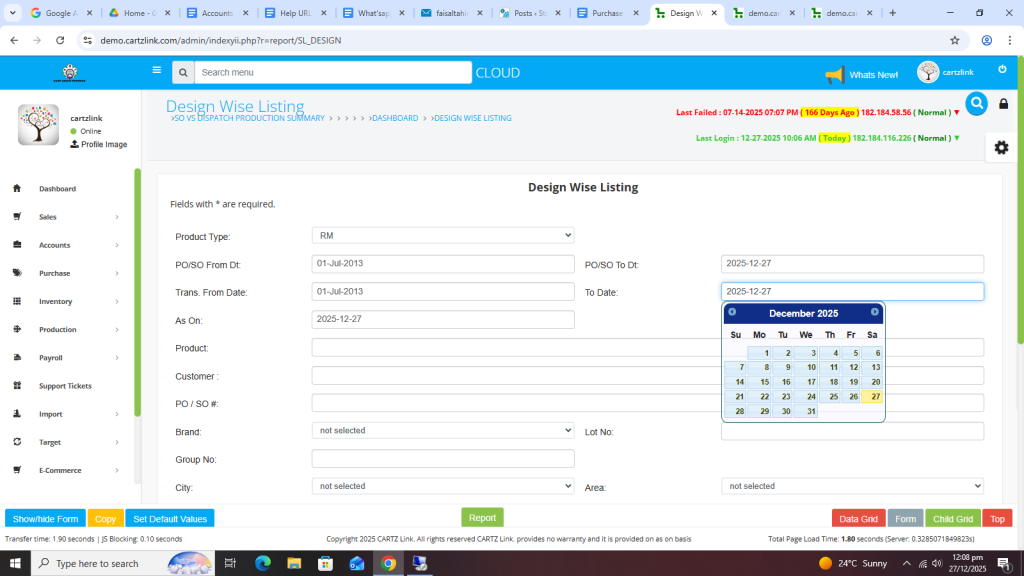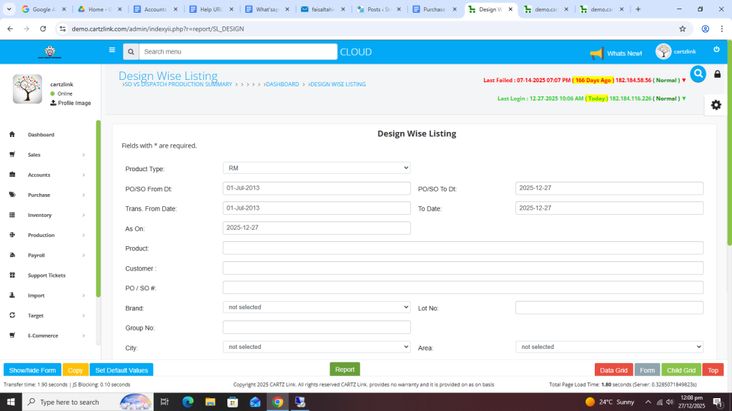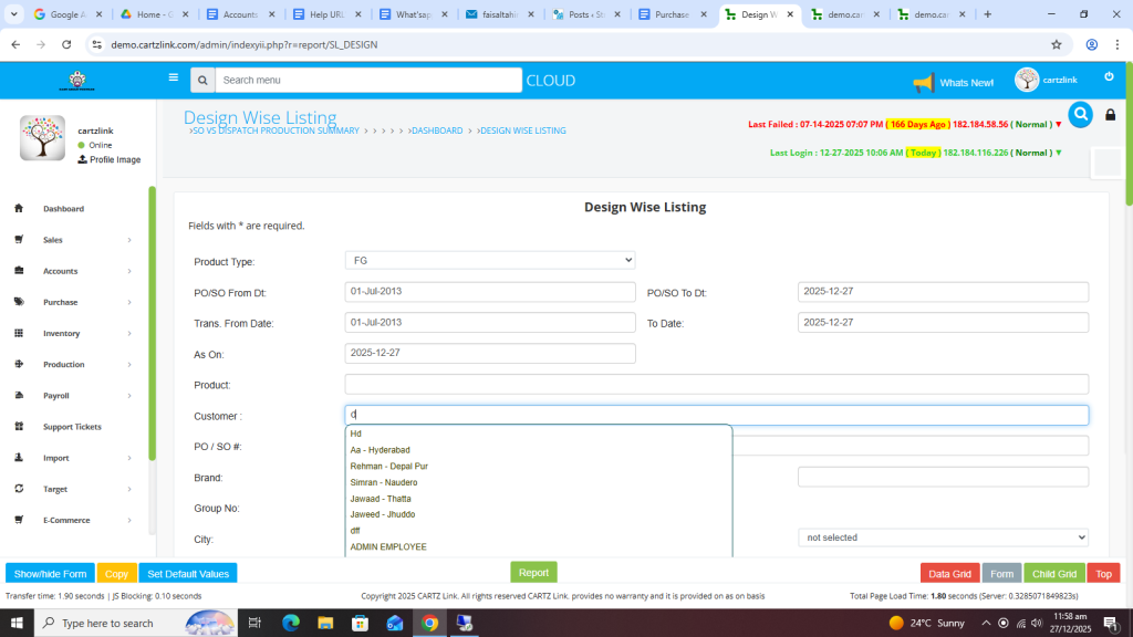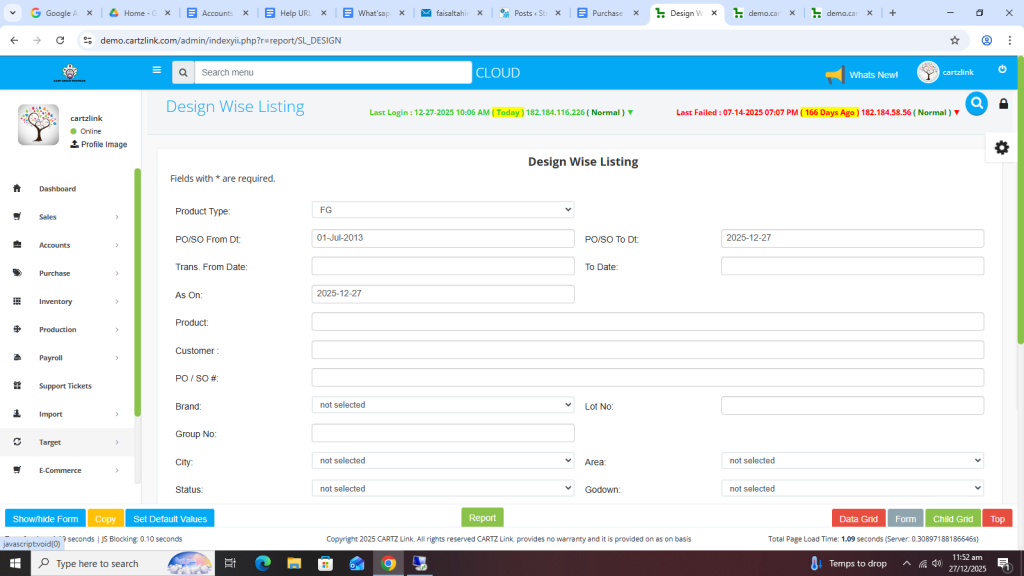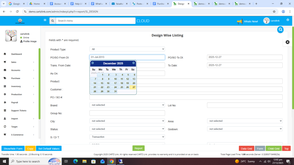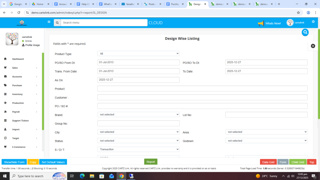 First click on Purchase, now click on Reports and then click on Design Wise Listing.