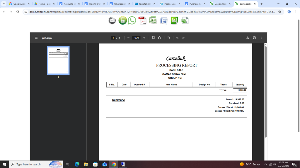 Your desired report for ALL Product Type will appear in a new window with Save / Print options available.
