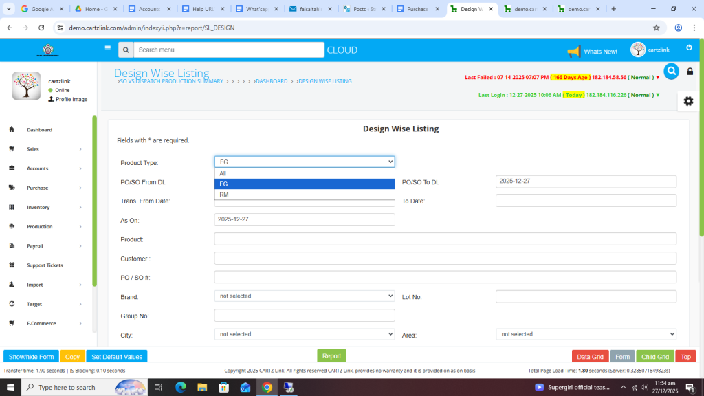 Also if the report is required against Product Type RM then again go to the previous page and select RM in product type.