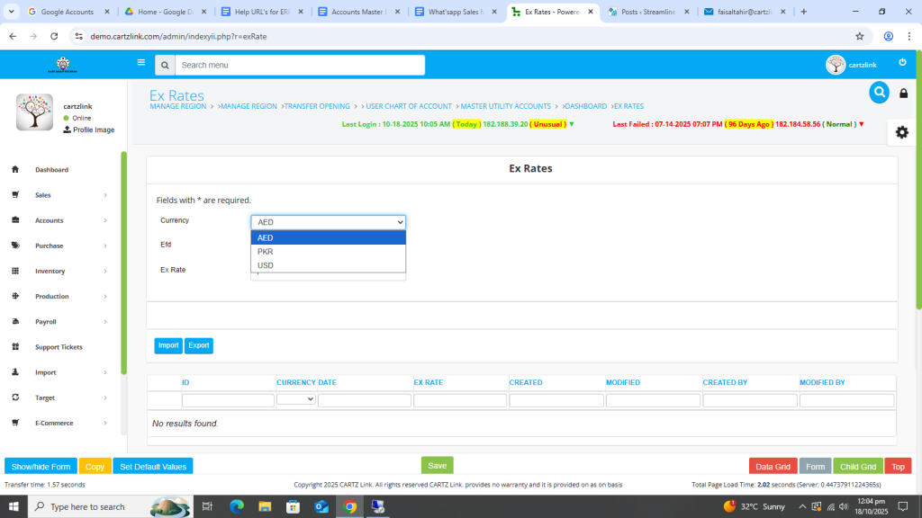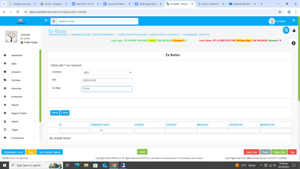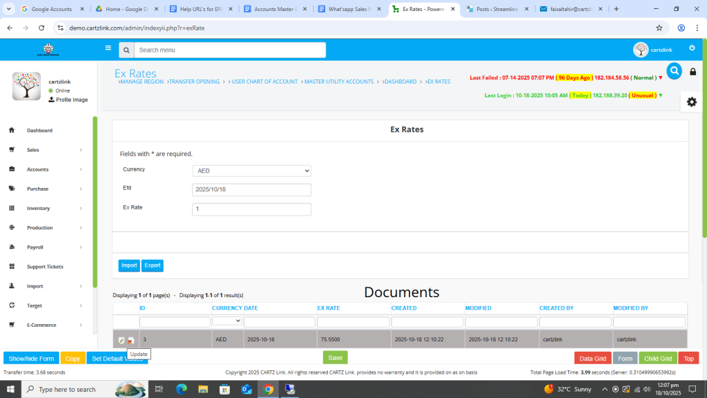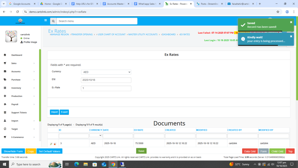 Exchange Rates for currencies can be defined through this feature. Go to Accounts, now click on Master Entry and then click on Ex Rate.