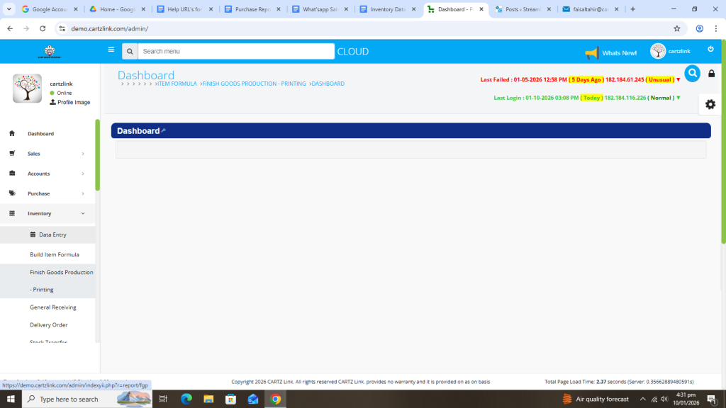 First click on Inventory, then click on Data Entry and now click on Finish Goods Production – Printing.