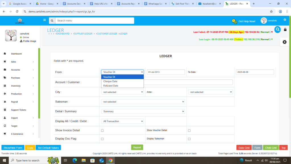 Your desired report and ledger for individual customer will open in a new window with Print / Save options.