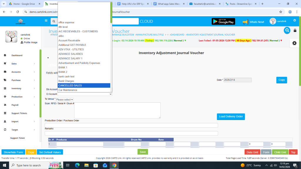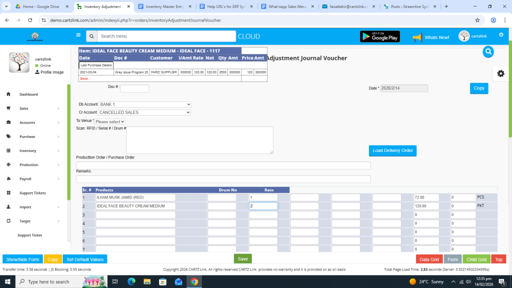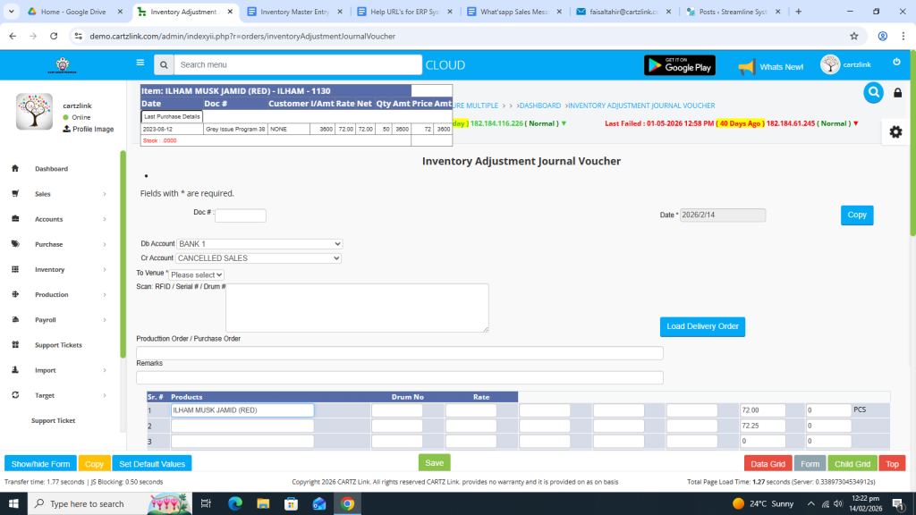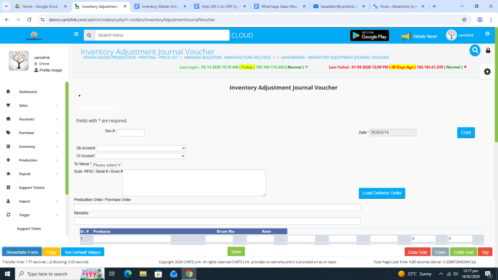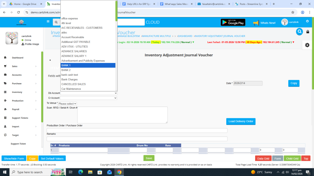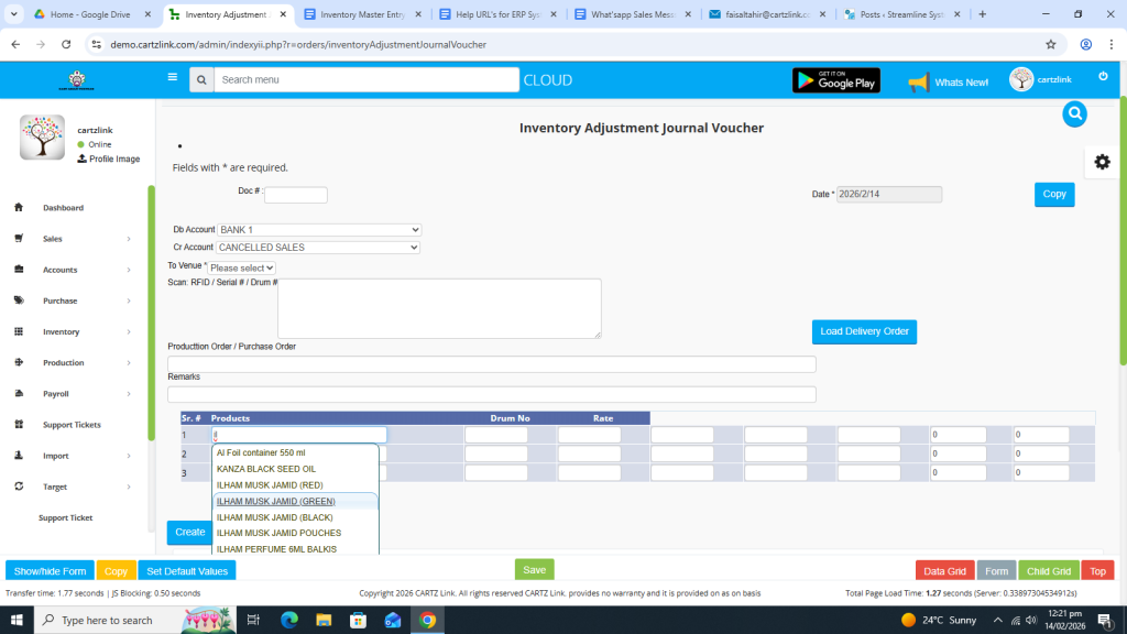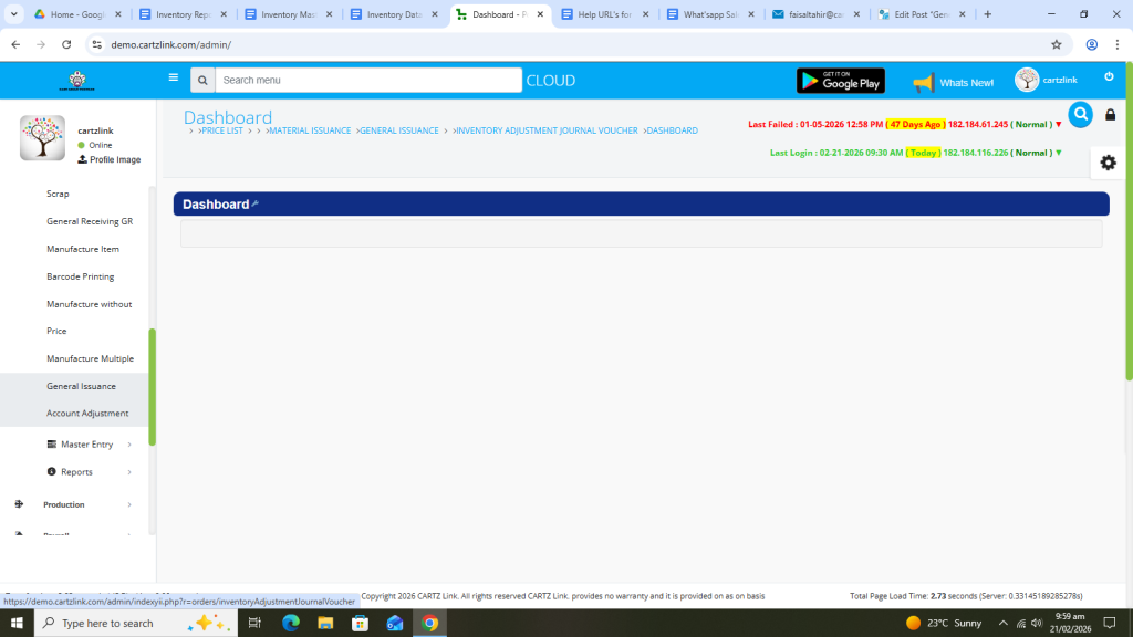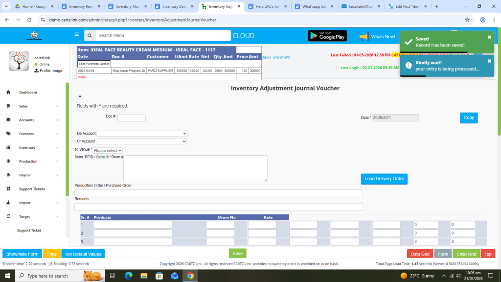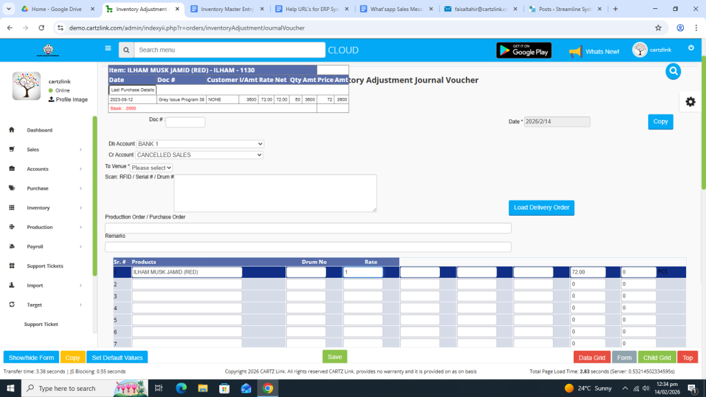 Click on Inventory. Now click on Data Entry and then click on General Issuance Account Adjustment.