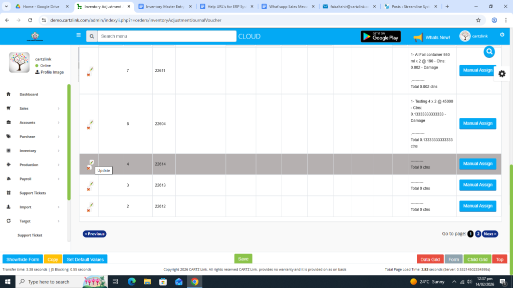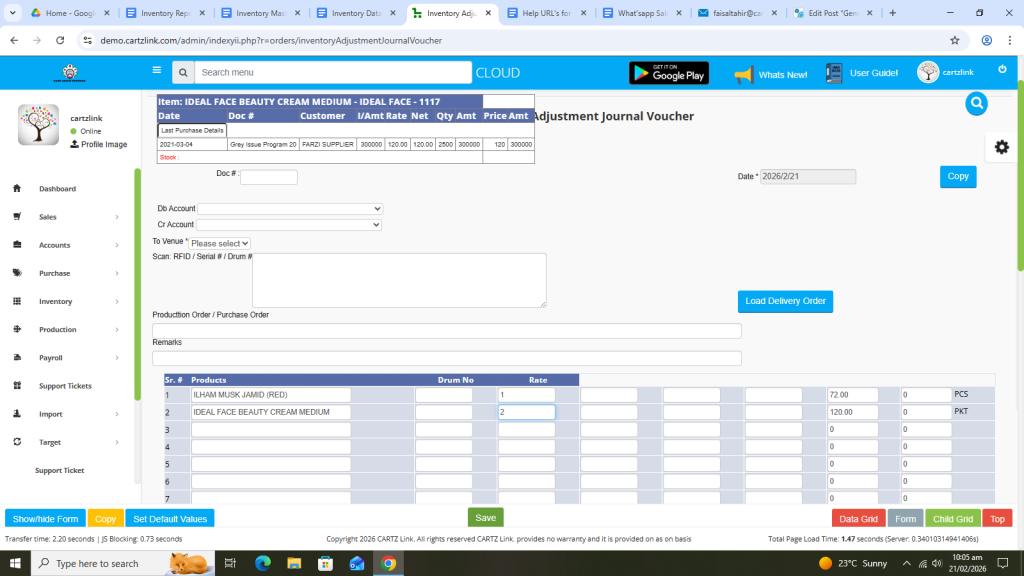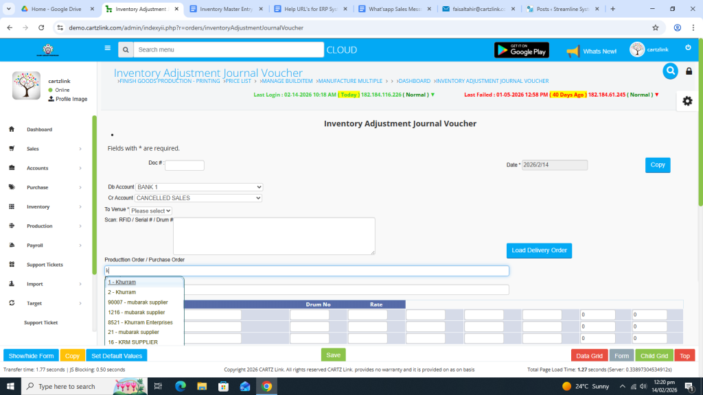 You may also load the previous Production Order or Purchase Order if required.