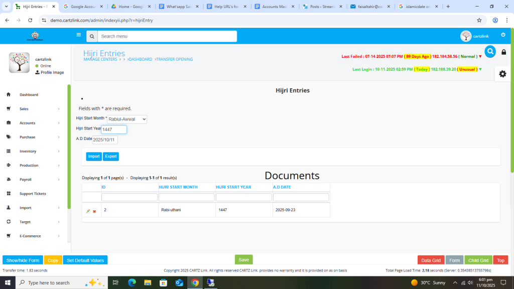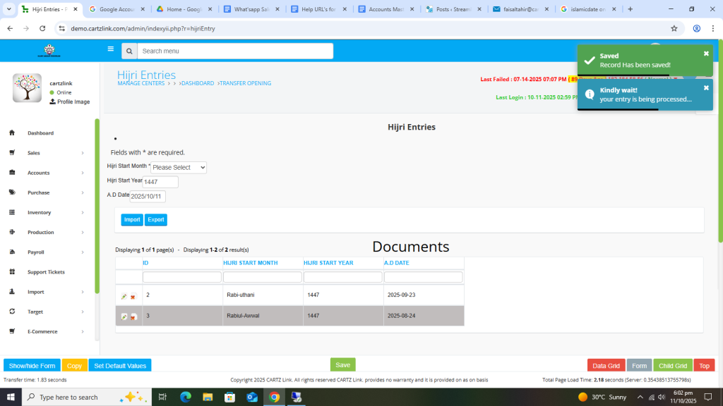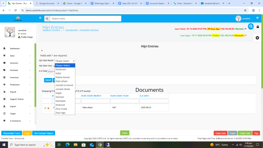 This feature is used to make Hijri Calendar starting month entries in the system for Zakat or any other calculations. Go to Accounts, now click on Master Entry and then click on Hijri Entry.