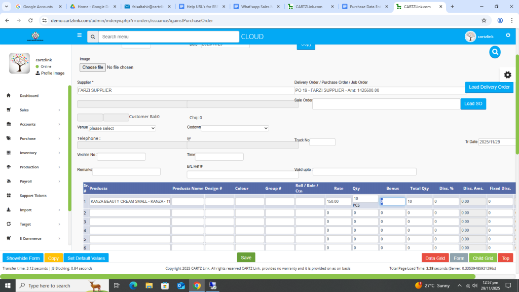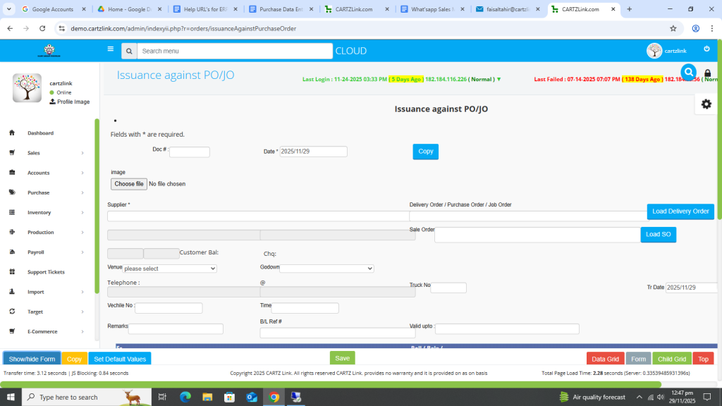 Issuance Against Purchase Order: