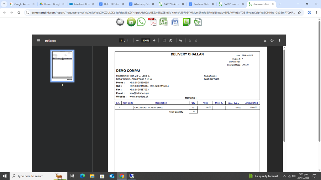 Now click on Print Delivery Challan with Rates.
