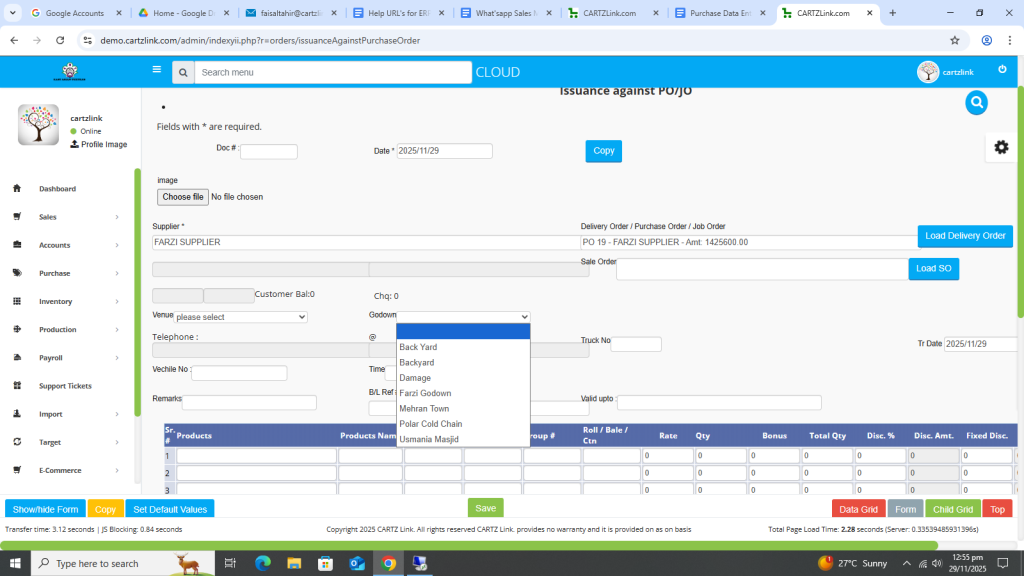 Godown selection option is also available.