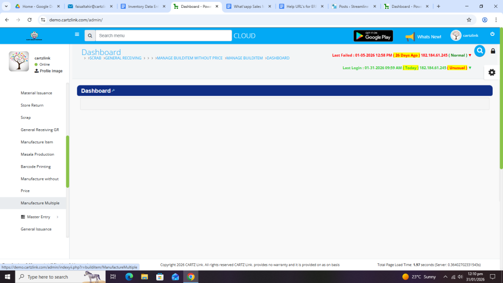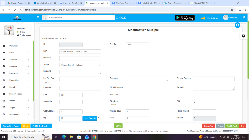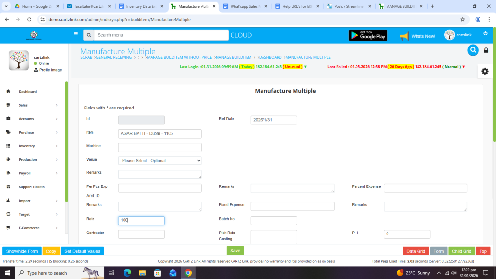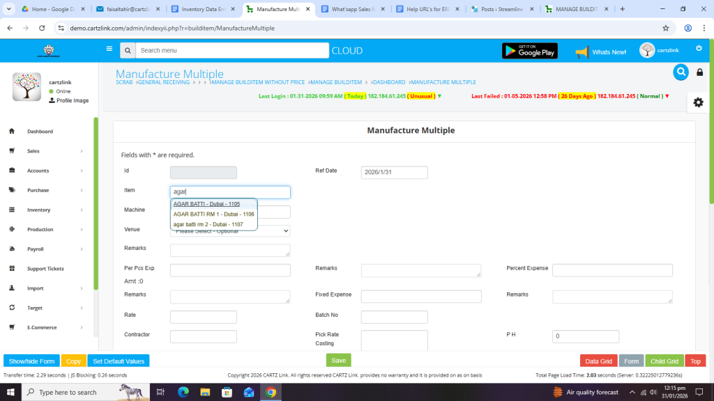First click on Inventory, then click on Data Entry and now click on Manufacture Multiple.