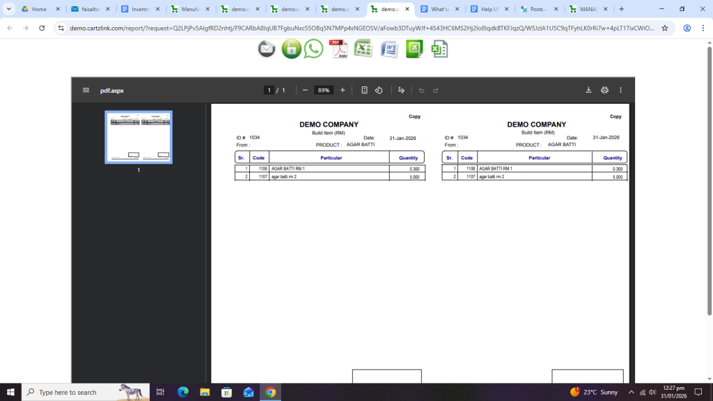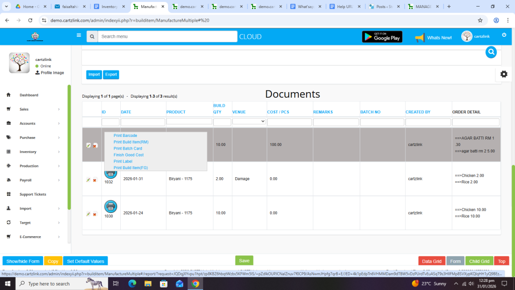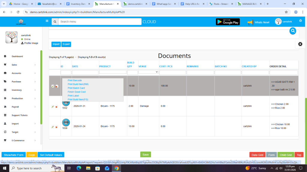 Click on Print Build Item (RM).