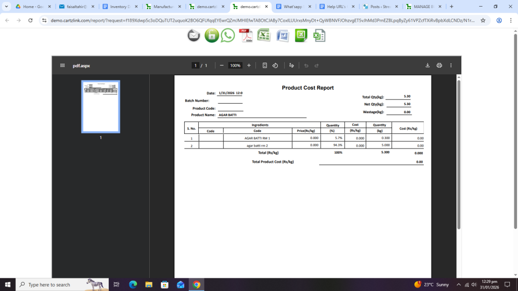 Another window will open with Print / Save options for Product Cost Report but without showing any Price.