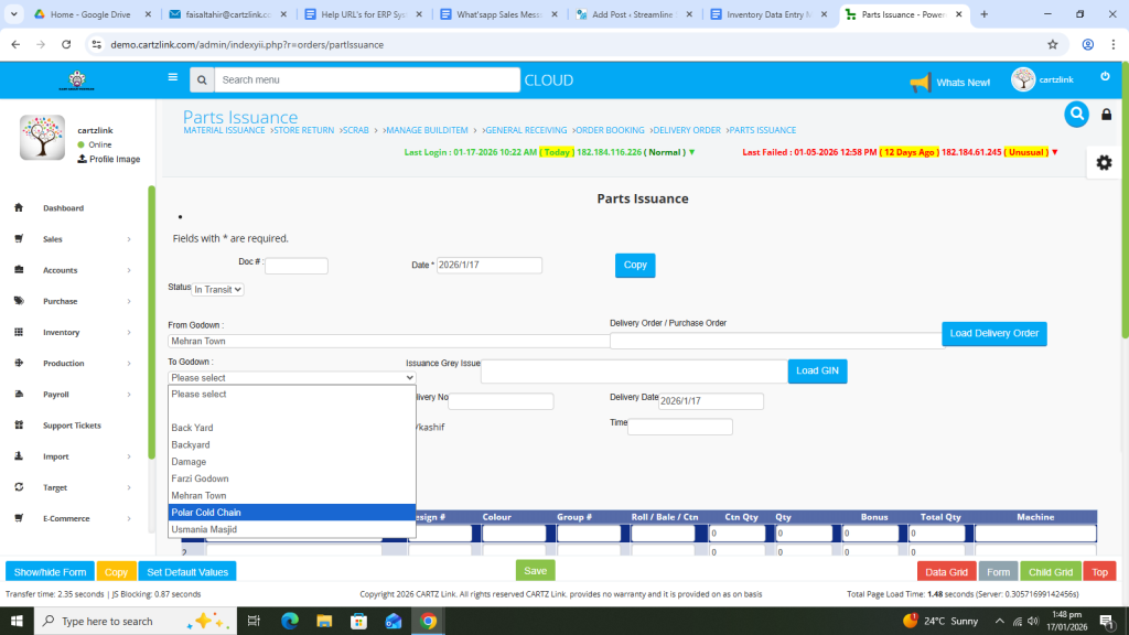 Parts Issuance: