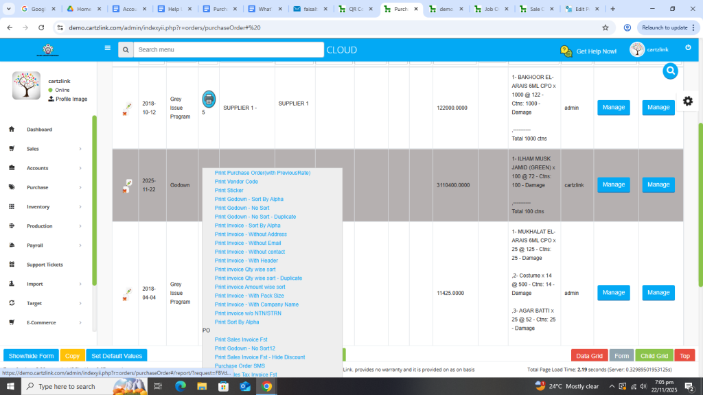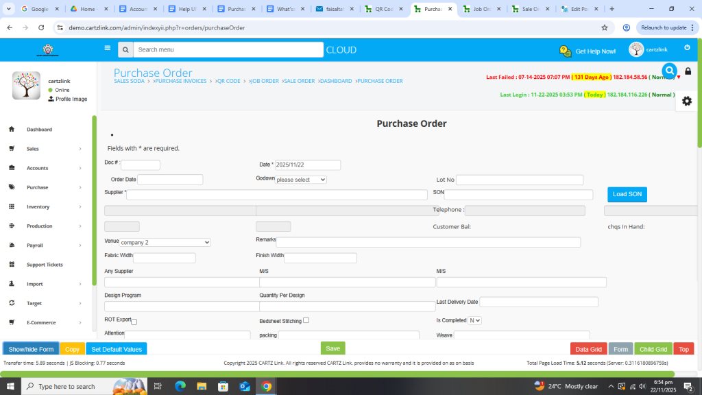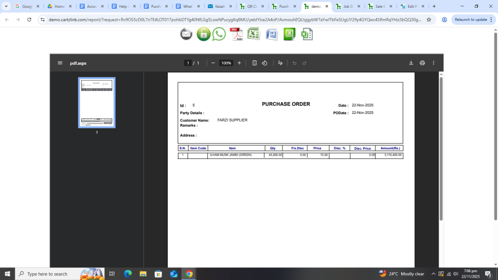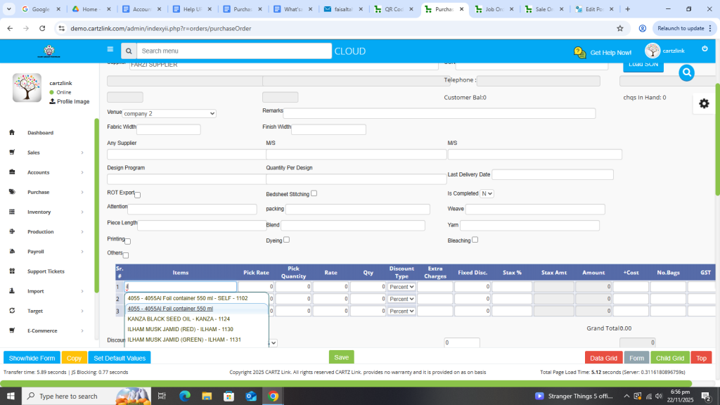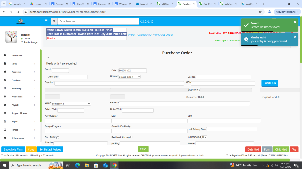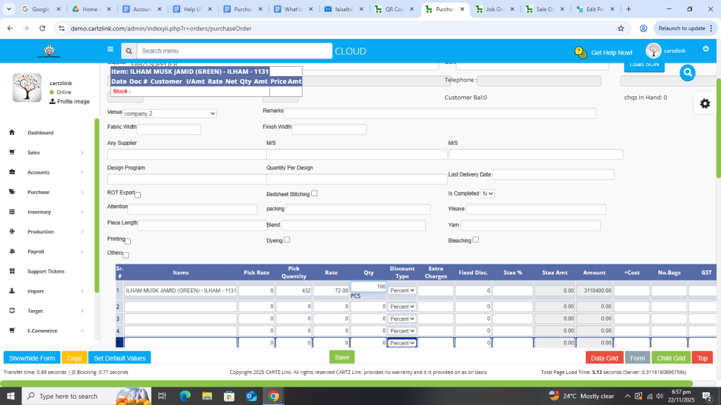 We can easily create Purchase Order in the system. Just go to purchase. Then data entry and then click on purchase order. Now input the relevant details and click on create and your PO or purchase order is created.