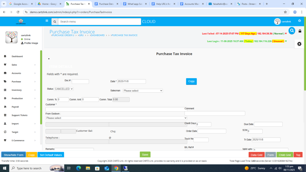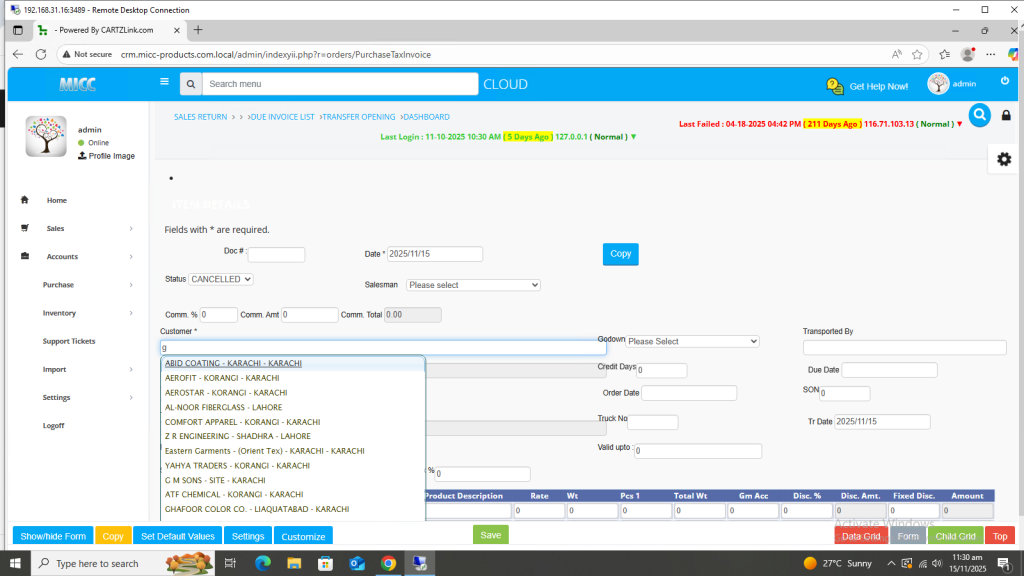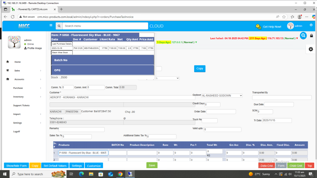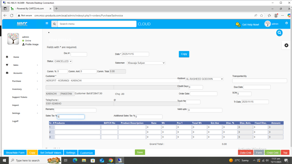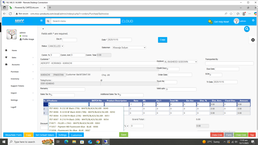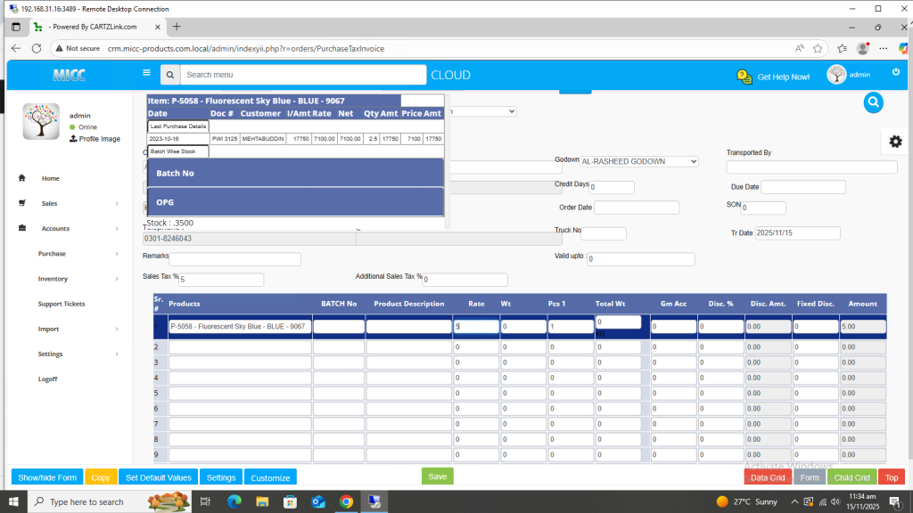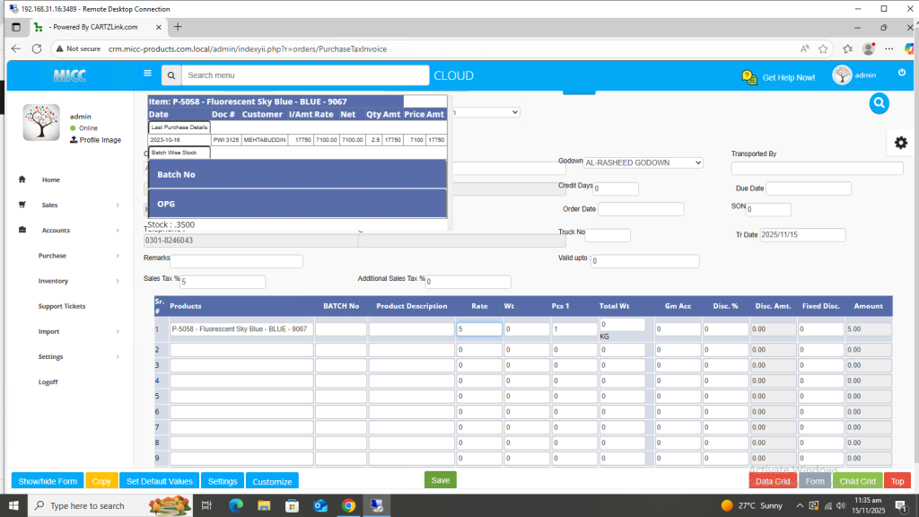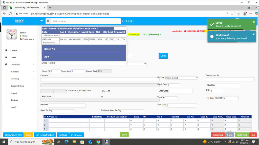 The Tax Invoice for purchase can be generated through this feature. Go to Purchase, now click on Data Entry and then click on Purchase Tax Invoice.