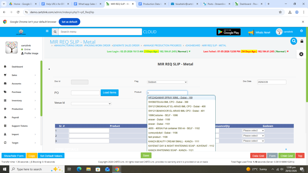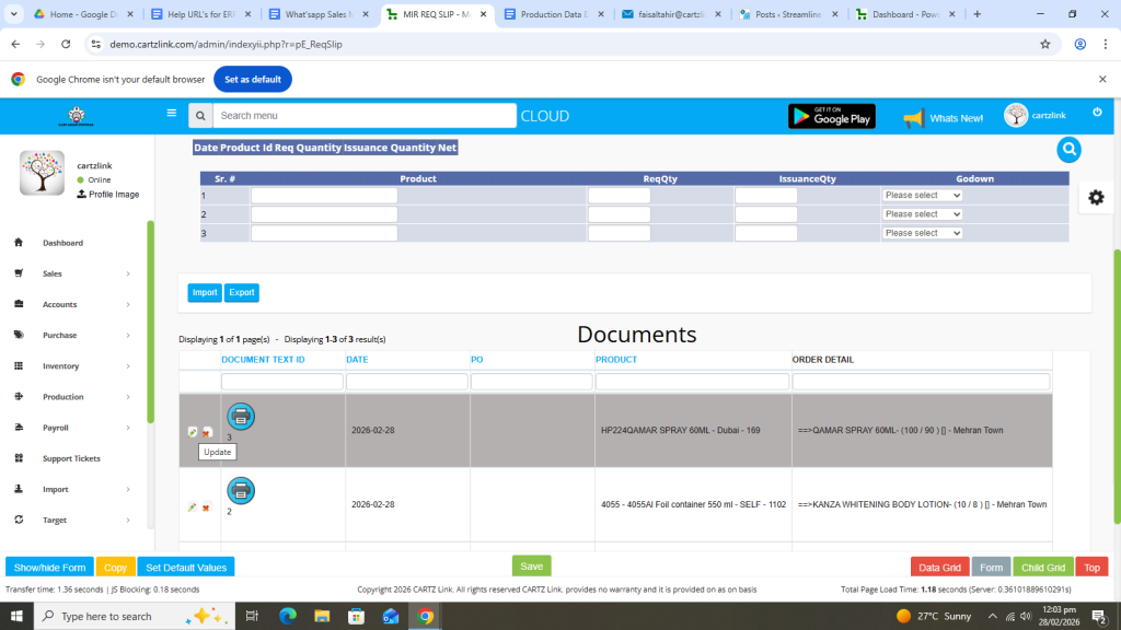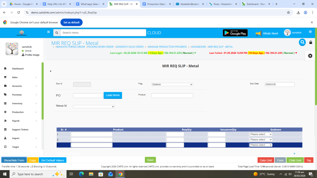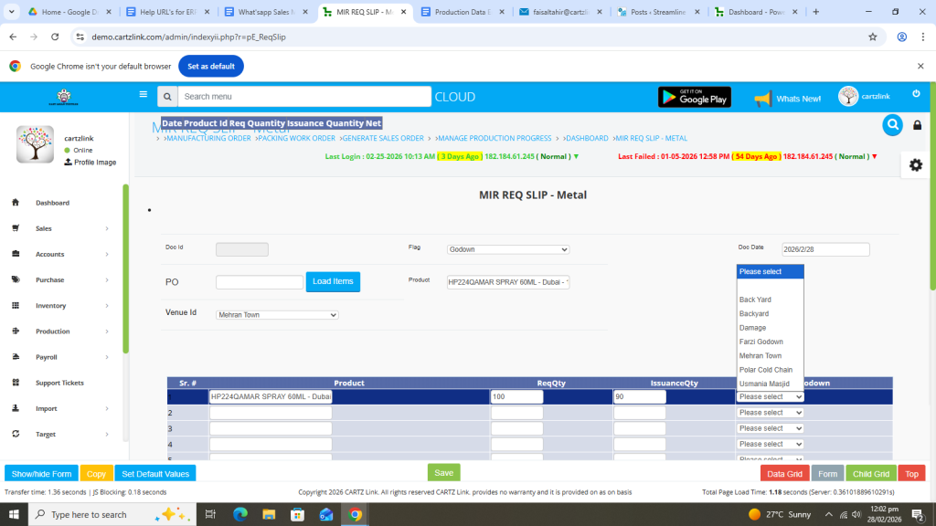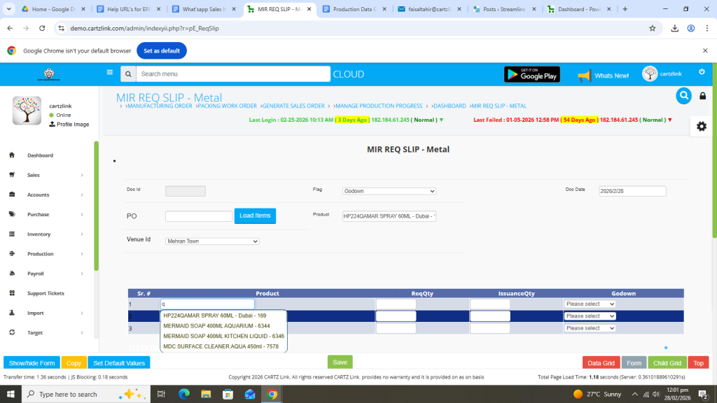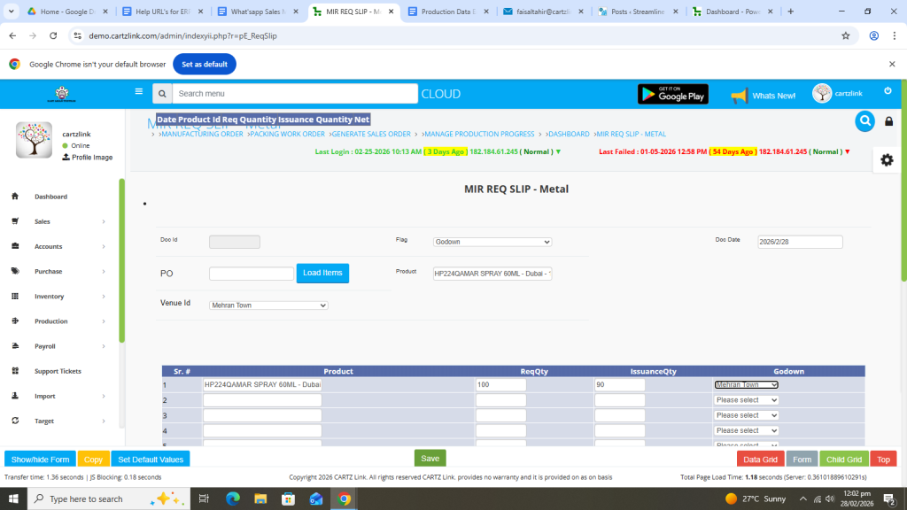 First click on Production, then click Data Entry and now click on Requisition Slip.