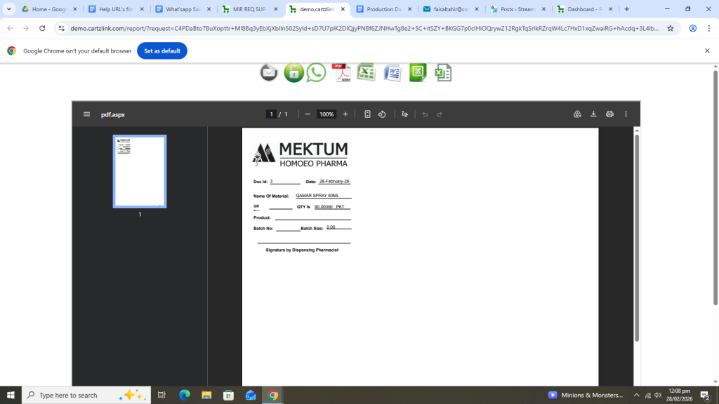 Various printing options are also available against this Requisition Slip. Just click on the Printer Icon against this entry.